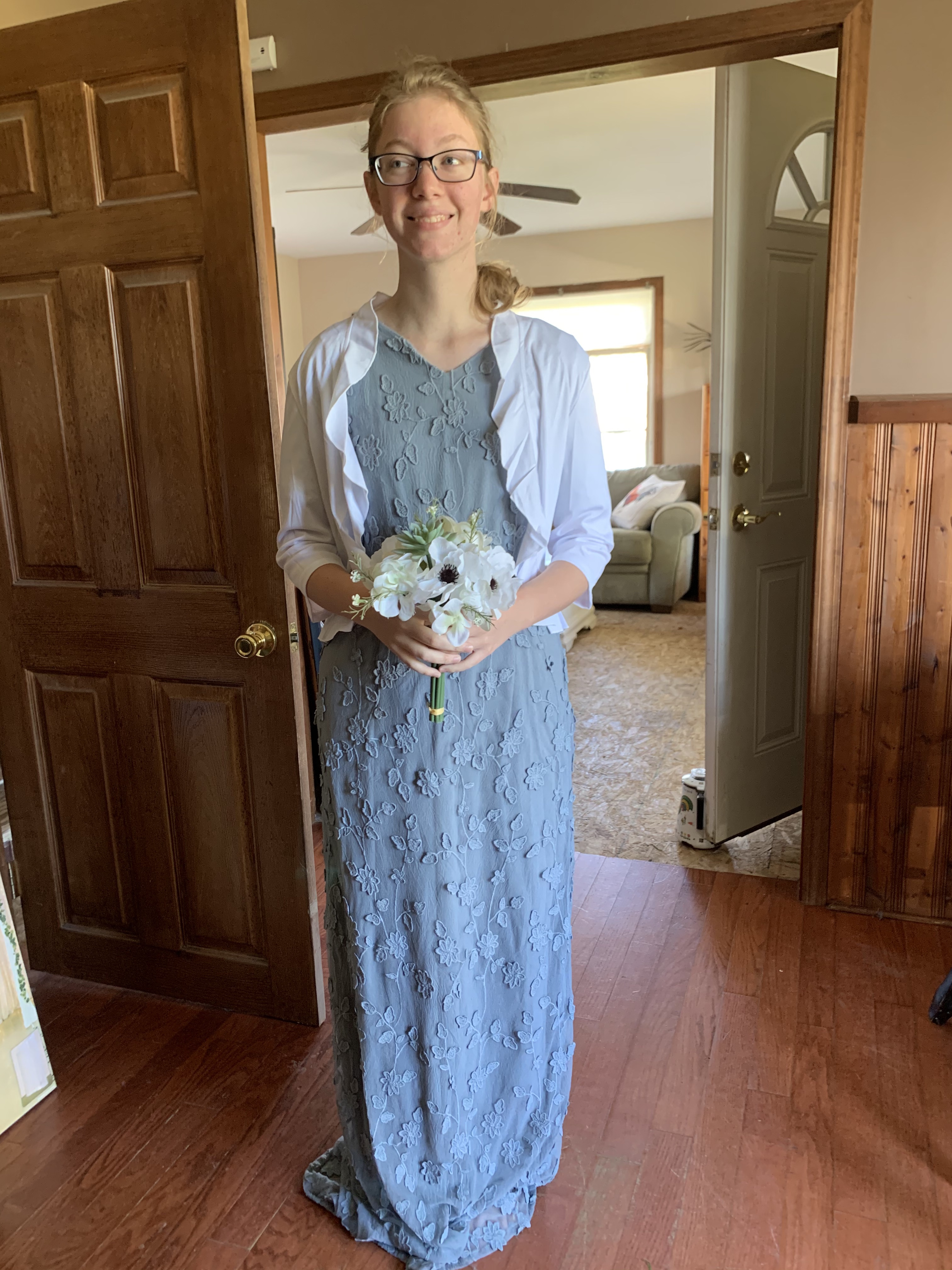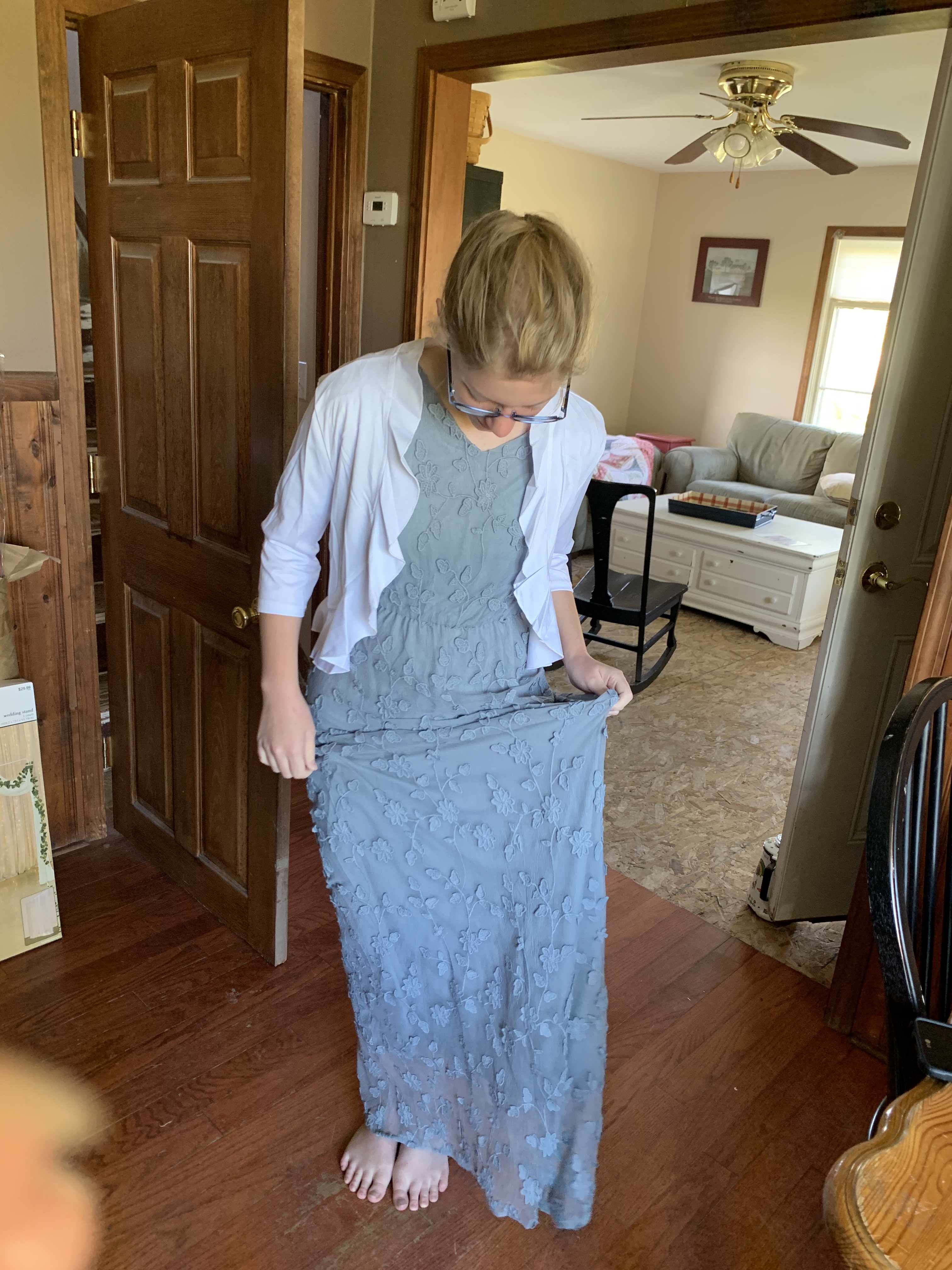I had no idea I was that short. When all was said and done, we had to take eleven inches off the bottom of that dress.